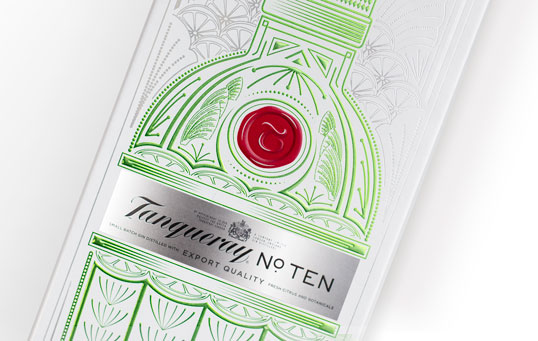 К сезону праздников компания Diageo выпустила супер-премиальный джин Tanqueray No. TEN в подарочной упаковке, дизайн которой создали в британской студии ButterlyCannon. Дизайн выдержан в стиле ар-деко, а главным элементом стала узнаваемая стеклянная бутылка джина.