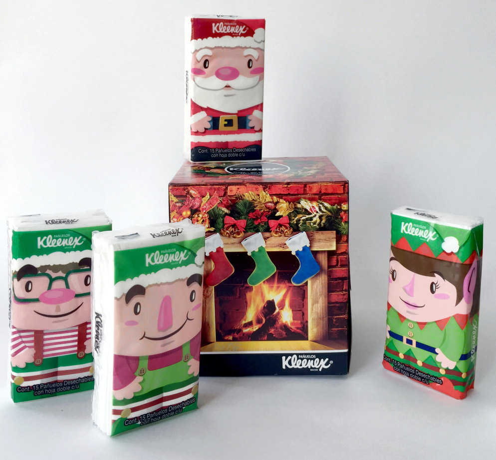 Мексиканское подразделение компании Kimberly – Clark представило рождественский выпуск бумажных салфеток Kleenex. В этом году дизайн разработали в местном агентстве Design Bureau.