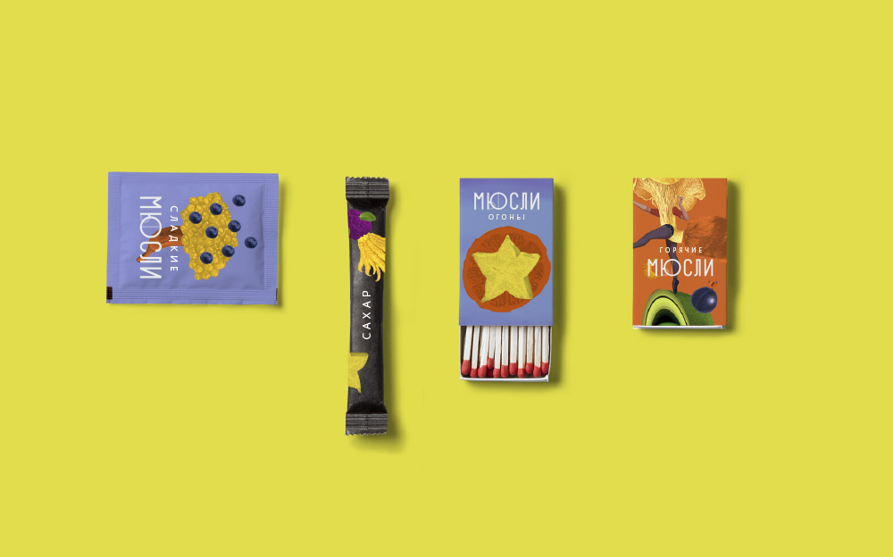 Агентство "Кендиз" разработало фирменный стиль ресторана "Мюсли", расположенного в Москве на Котельнической набережной.