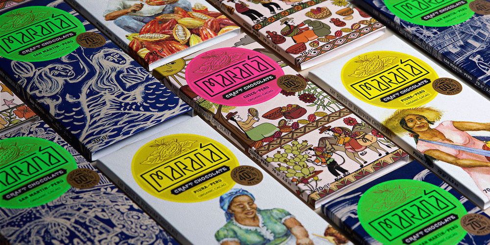 Перуанская компания Cacao Valley выпустила шоколад Maraná. Это крафтовый продукт, какао-бобы для которого собраны в трех регионах Перу: северное побережье Пьюра, Куско, Сан-Мартин. Это географическое разделение легло в основу дизайна упаковки, который разработали в студии ICONO.