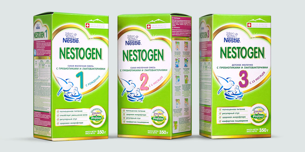 Команда Mildberry провела редизайн линейки детских молочных смесей Nestogen от международного концерна Nestle. Образ бренда был приведен в соответствие с высоким швейцарским качеством.