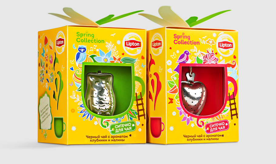 Накануне праздника всех влюбленных и Международного женского дня Unilever выпустил ограниченную серию весенних промо-наборов чая Lipton с ситечками в форме сердечка и совы.
