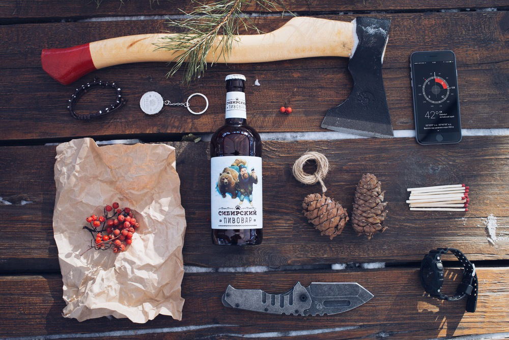 Основа бренда и этикетки — образ типичного сибиряка, но в нетипичном амплуа. «Сибирский пивовар» — это не старый отшельник или охотник, а современный парень, живущий в тайге со своим питомцем-медведем и варящий отменное пиво. Он молод, бородат и стильно одет, его легко можно было бы встретить в клубе или на модной городской вечеринке.