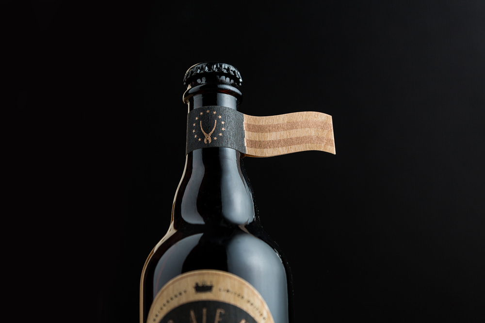Студия дизайна 1 Trick Pony совместно с типографией Steinhauser, которая специализируется на выпуске этикеток под заказ, сделали упаковку для нового стаута. Каждая бутылка упакована в деревянный футляр. Этикетка и флаг на горле бутылки сделаны из шпона вишневого дерева, на которые нанесена 9-цветная печать, включая металлическую «медную» краску.