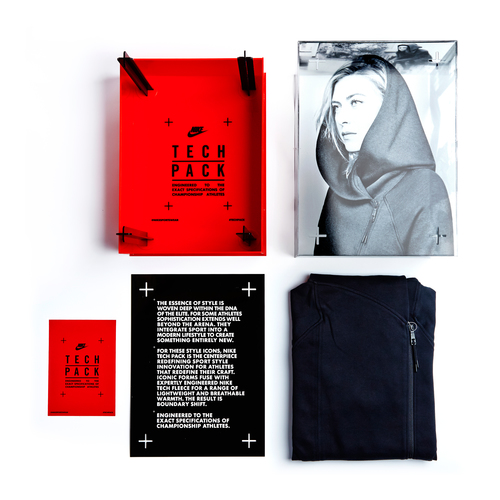 Австралийская студия Taboo разработала дизайн упаковки для коллекции Nike. Многослойная упаковка делает продукт внутри более динамичным. Всего выпущено 100 упаковок Nike TechPack.