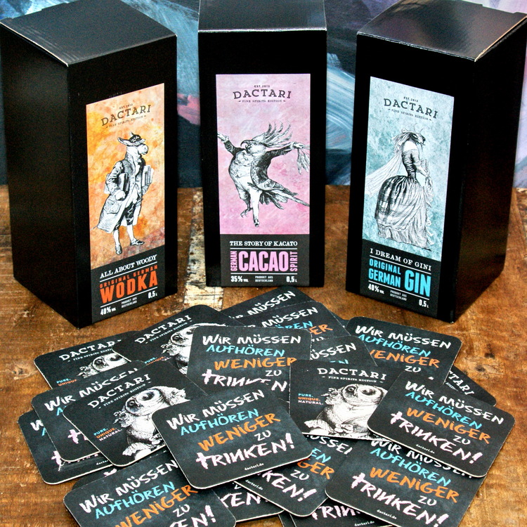 Dactari выпускает три алкогольных напитка: "The story of Kacato" на основе какао, немецкий джин "I dream of Gini" и немецкая водка "All About Woody".