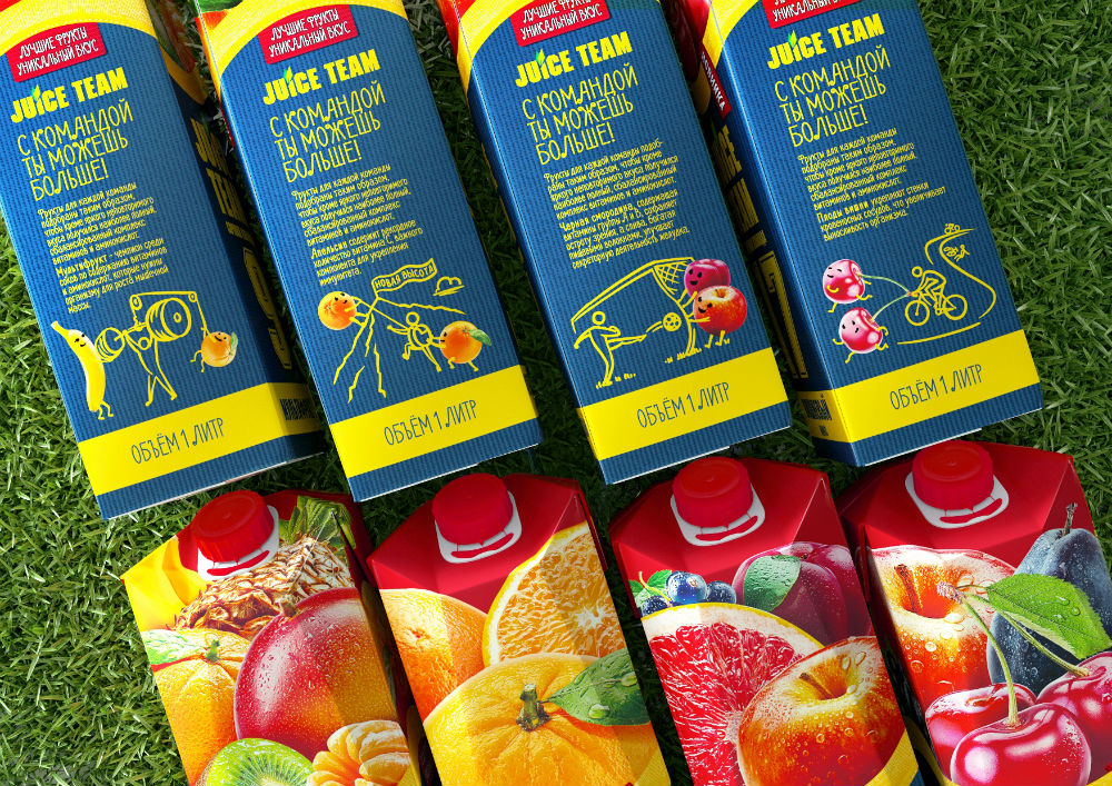 Основой нового визуального образа «ДжусТим» стало метафоричное представление бренда как настоящей дружной и сплочённой спортивной команды соков, у которой теперь появились и все «командные» атрибуты – своя узнаваемая форма, собственный девиз и порядковый номер, принадлежащий легендарному спортсмену.
