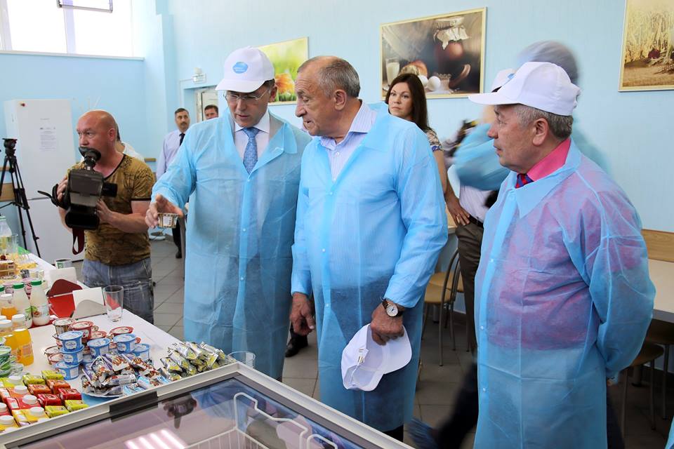 Глава республики в сопровождении руководства агрохолдинга осмотрел производственные мощности по переработке молока, диспетчерский пункт управления автоматизированной линии по приемке и переработке продукции, упаковочные линии, камеру термостатирования готовой продукции и современный производственно-логистический комплекс.
