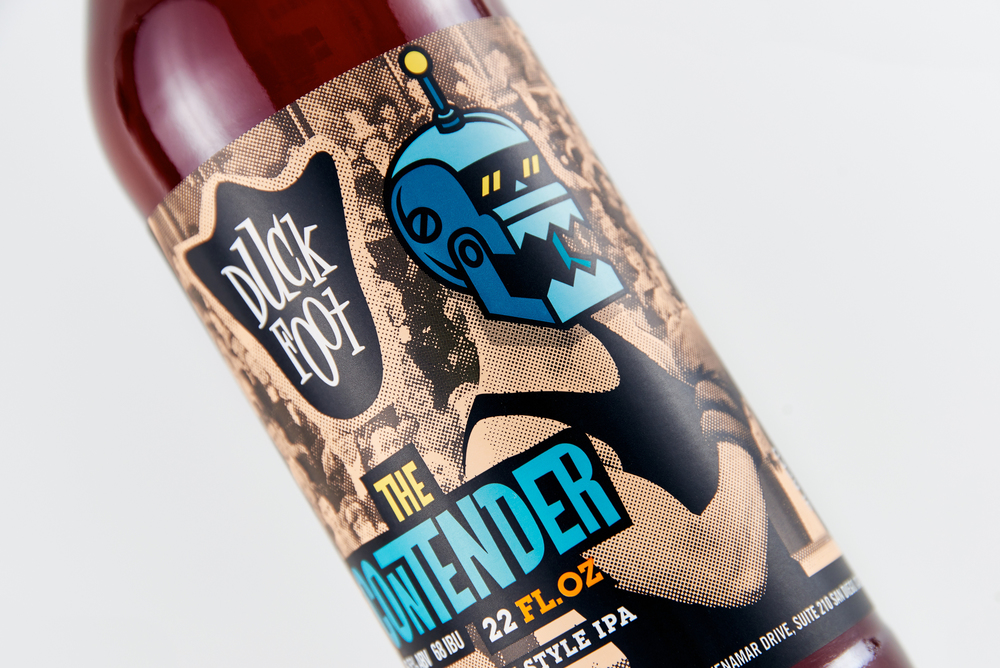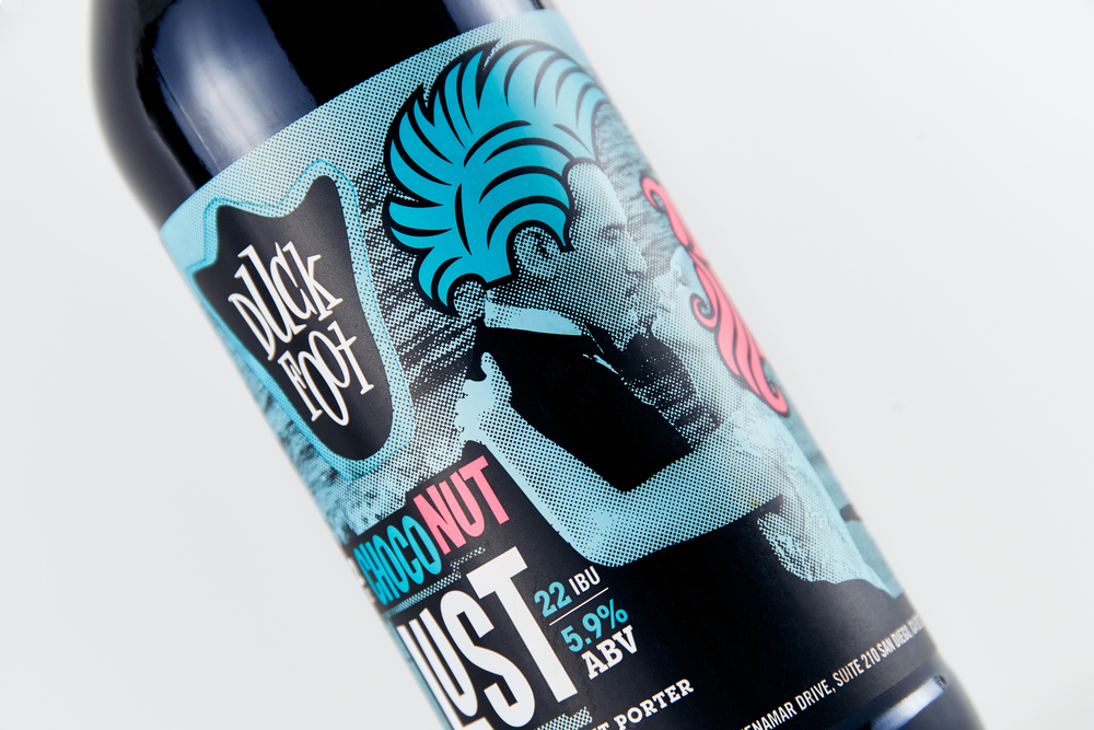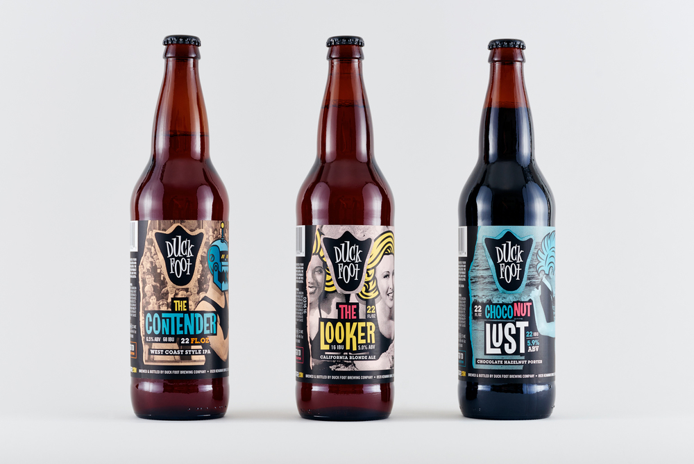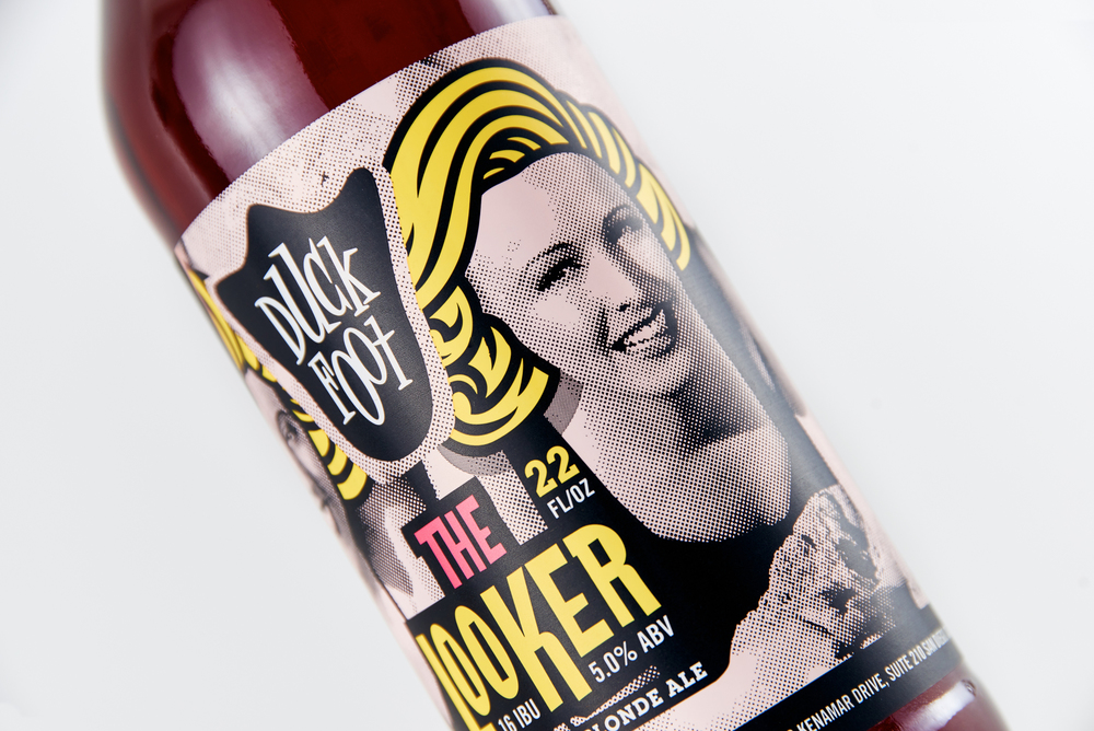 Дизайн упаковки для пива разработали специалисты американской студии Madonna+Child Design House. Экспрессивные голубой, розовый, желтый цвета в стиле поп-арт ранних 1960-ых годов отражают веселую эстетику пивоварни Duck Foot Brewing Co.