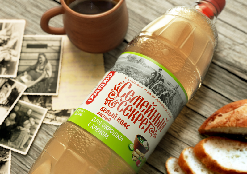 По заказу компании «Очаково» в студии DDVB разработан новый визуальный образ бренда «Семейный секрет» и дизайн упаковок для трех вкусов основной линейки белых квасов: «Традиционный», «Смородина-мята», «Окрошечный с хреном», а также для двух квасов домашней серии: «Бородинский» и «Заварной». Новое оформление должно подчёркивать традиционность рецептуры и отличительные черты продукта, а также выделить его в торговом пространстве на фоне многочисленных соседей по «квасной» полке для стимулирования первой покупки.