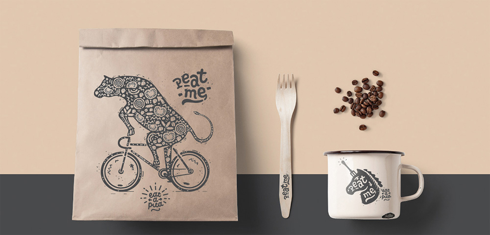 Брендинговое агентство YellowBrand (Калининград) разработало логотип и фирменный стиль для кафе Peat Me, где готовят питы. По желанию заказчика, в студии придумали "необычного фирменного зверя" - единорога.