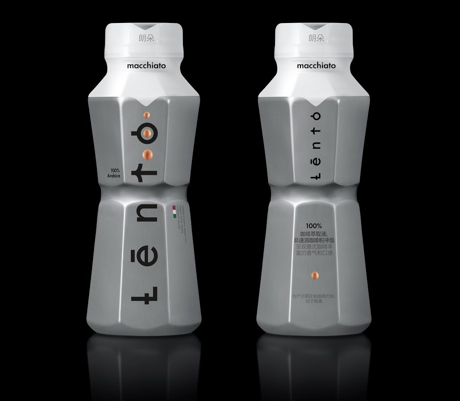 Итальянский стиль передан, прежде всего, формой бутылки, которая напоминает легендарную кофеварку Bialleti. Дизайнеры поработали над обновлением логотипа. Название "Lento" трансформировано при помощи креативной штифтовой работы. Дизайнеры осторожно добавили визуальные элементы к каждой латинской букве. В результате получится новый образ, в котором дизайнеры отдают дань уважения китайским логограммам и символизму.