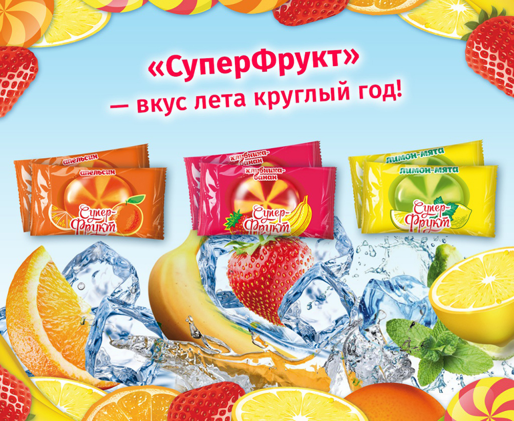 Кондитерская фабрика «Ламзурь» (Саранск) выпустила новинку - леденцовую карамель «СуперФрукт». Это карамель типа «старлайт» в трех популярных вкусах: Апельсин, Клубника-Банан и Лимон-Мята в удобной упаковке «флоу-пак».