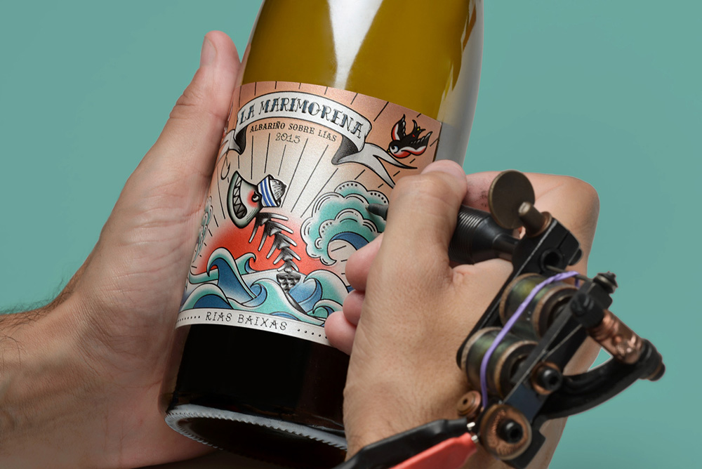 Испанская студия Estudio Maba разработала дизайн этикетки для вина La Marimorena 2015. Дизайнеров вдохновляли восточный театр кукол и морские татуировки «старой школы».