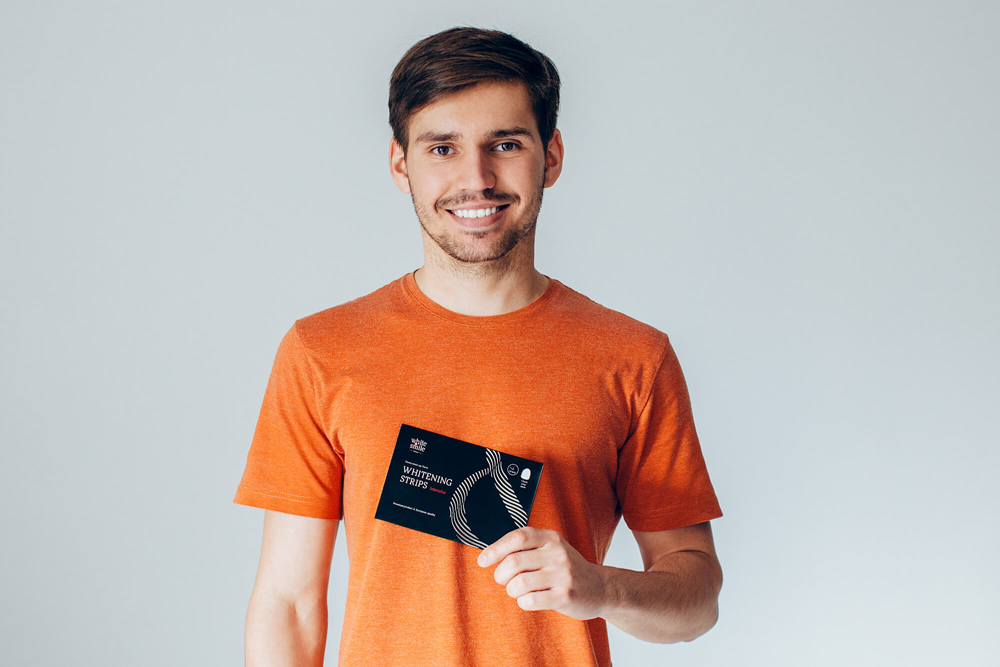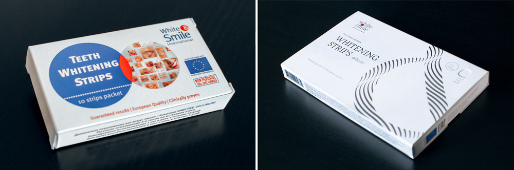 Проанализировав рынок потребительских предпочтений, дизайнеры выяснили, что наиболее популярным конкурентом являются американские полоски Crest Whitestrips. Задача заключалась в том, чтобы охватить middle class-аудиторию, которая стремится к статусным товарам и приветствует лакшери-стиль. Поэтому в дизайне были использованы лаконичные цвета, ассоциирующиеся с товарами премиум-класса: чёрный, белый и красный.