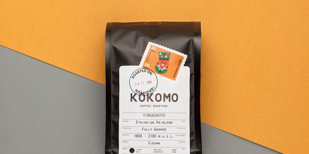 Оформление упаковки напоминает посылку, которая пришла из далекой Африки или Южной Америки. Основная информация содержится на «этикетке отгрузки». Она похожа на бланк с простым шрифтом и отсутствием декоративных элементов. Марки с иллюстрациями добавляют бренду индивидуальность.