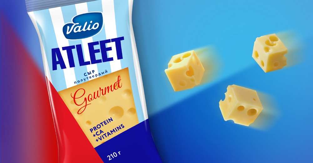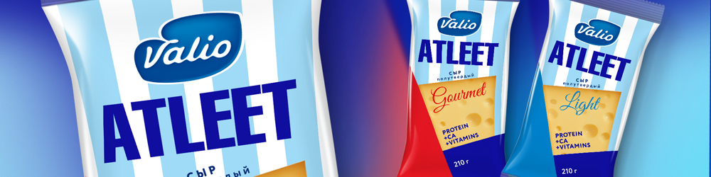 В 2016 году компания Valio возобновляет продажи сыра Atleet – произведенного в России. Для более эффектного запуска продукта было принято решение обновить дизайн. Перед брендинговым агентством DS 1 стояла задача разработать современный, яркий, динамичный, привлекающий внимание дизайн. Разноцветные блоки из геометрических фигур придают упаковке сыра Atleet спортивную подвижность и актуальность, одновременно делая дизайн необычным и запоминающимся. В качестве основного цвета команда DS 1 предложила использовать сине-голубую гамму, которая присутствовала на упаковке в прошлом.