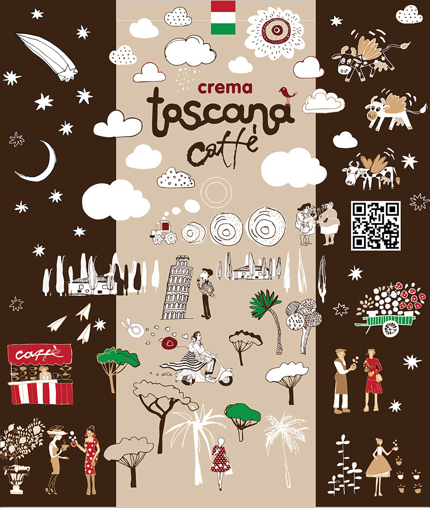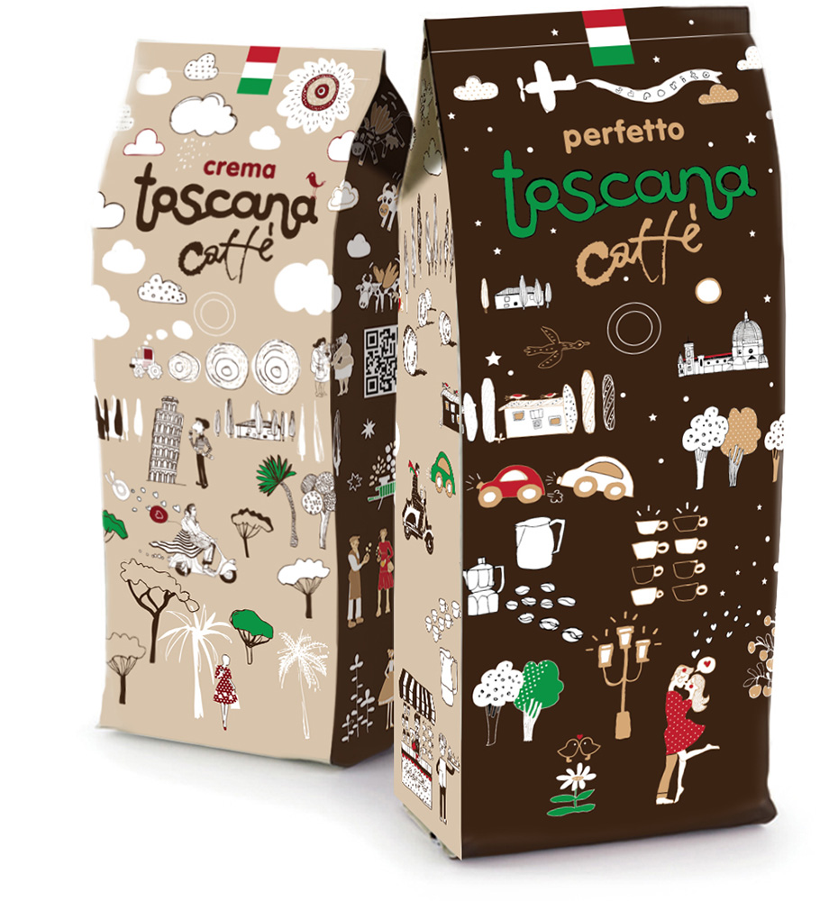 Американский дизайнер Anna Chorna представила работу по оформлению кофейного бренда Toscana Caffe. Кофе выпускается украинской компанией Gemeni. В линейку вошли легкий кофе Crema Toscana Caffe и насыщенный Perfetto Toscana Caffe.