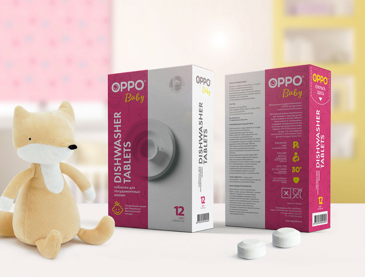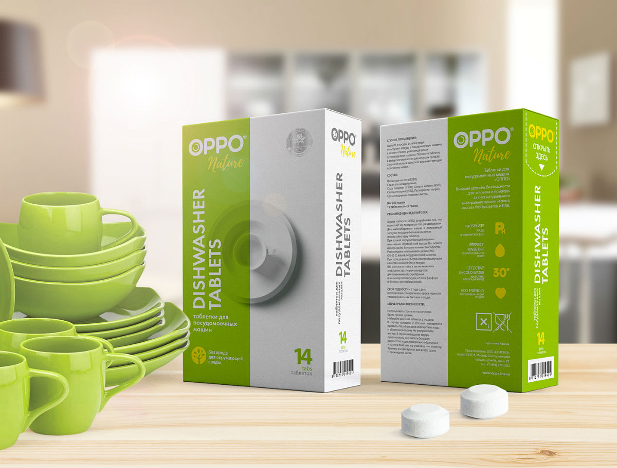 OPPO - это инновационный российский продукт, способный потеснить на полках импортные аналоги. До момента его появления в России практически не производились таблетки для посудомоечных машин, и у отечественного потребителя не было возможности купить продукт по приемлемой цене. Однако экономический кризис и международные санкции открыли российскому производителю эту перспективную нишу.