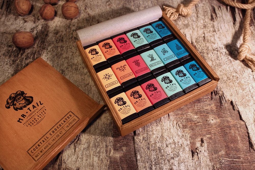 Кроме отдельных бутылок с коктейлями, дизайнер разработала разные подарочные наборы, в некоторые из которых также входят небольшие шоколадки.