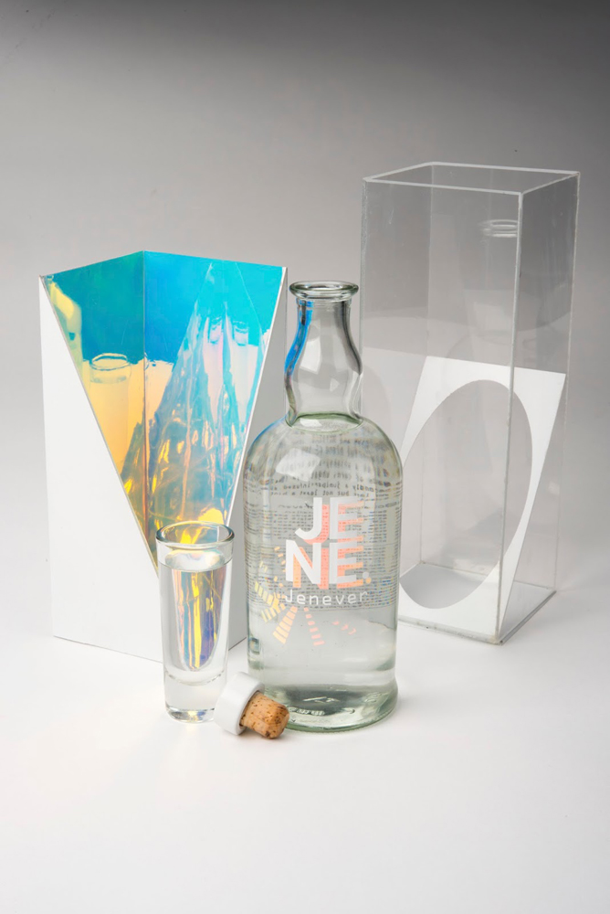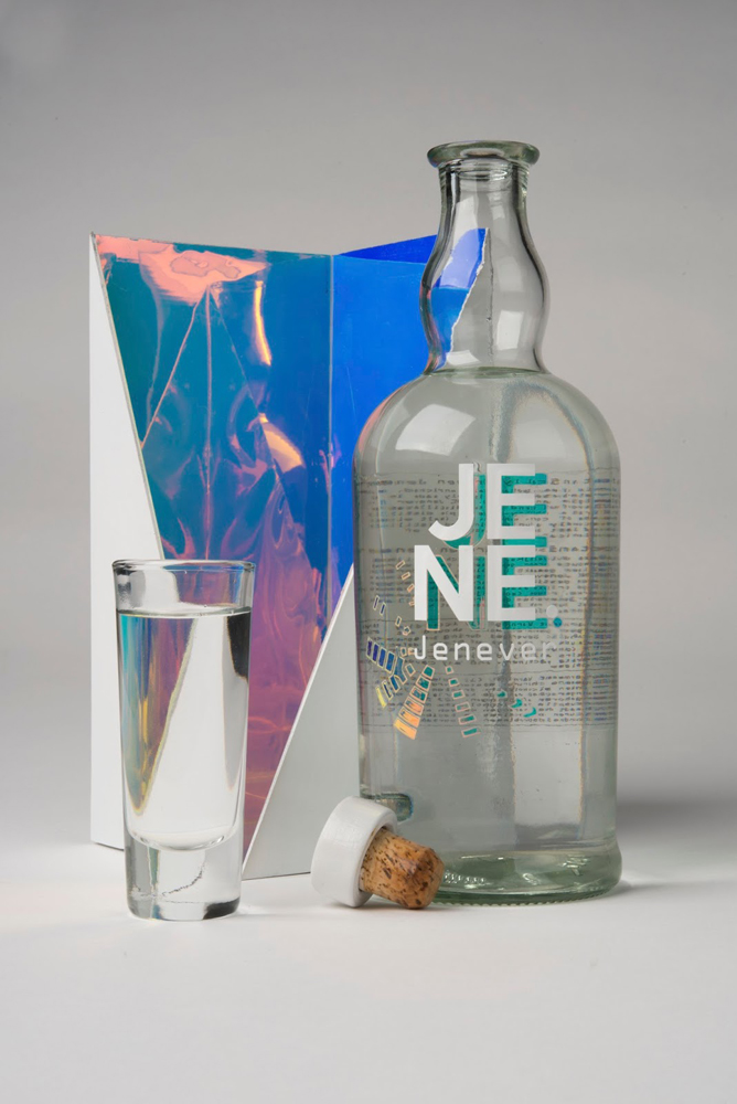 Brenna Veenstra, студентка факультета «упаковочный дизайн» американского университета Висконсин-Стаут, разработала концепт бренда JENE. Это женевер – алкогольный напиток, который производится в Бельгии и Нидерландах.