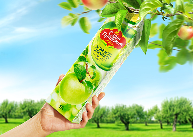 На обновленном визуальном образе сока классическая продуктовая композиция сменилась изображением сочных фруктов и ягод, которые растут на ветках и сохраняют всё лучшее от природы. Главным стилеобразующим элементом дизайна стало зеленое яблоко, и это было сделано не случайно: яблоко – это символ компании. В её садах, площадь которых на текущий момент составляет свыше 8 тыс. га, выращивается более 60 сортов яблок; Весь ассортимент фруктовой линейки «построен» на яблоке – яблочный сок входит в состав всех рецептур.