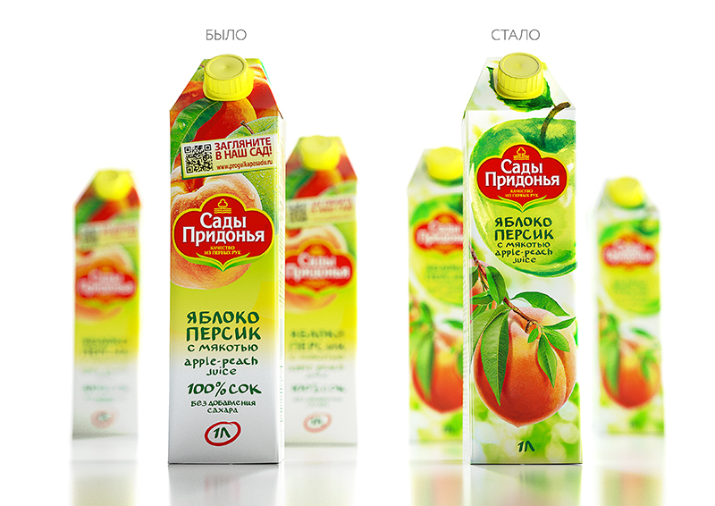 Перед агентством стояла непростая задача - новый визуальный образ должен не только выразить позиционирование марки – «качество из первых рук», но и на визуальном уровне донести ключевое сообщение: «Сады Придонья – это самые свежие и натуральные соки». А что может быть более натуральным и свежим, чем фрукты прямо с ветки? Именно эта концепция и была заложена в качестве основы нового стилистического решения.