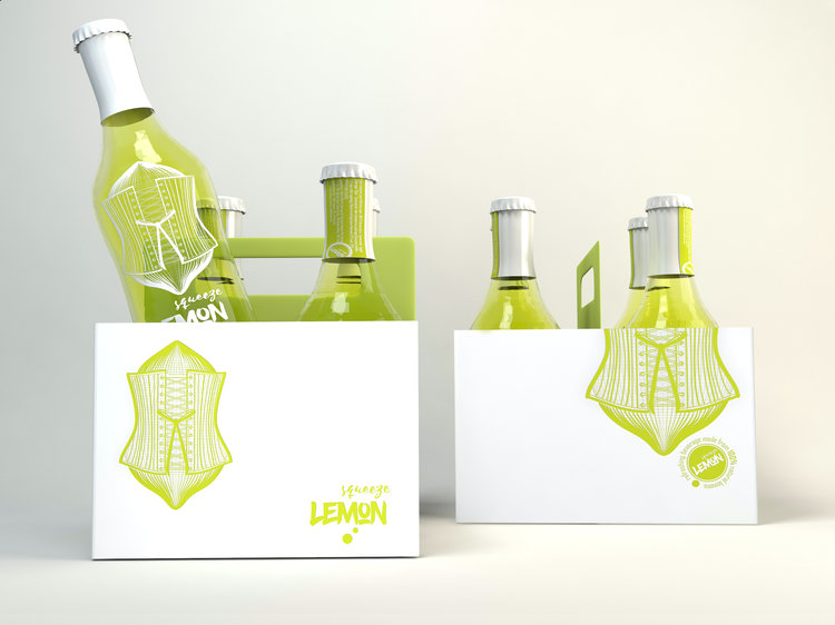 Лимон, затянутый в корсет, рассказывает историю о быстром превращении лимона в лимонад. Дизайн передает уникальную личность бренда. Она современная и игривая, но с налетом классики.