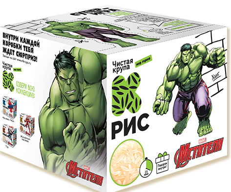 Для девочек и мальчиков разработаны различные варианты упаковок и подарков внутри каждой пачки. В настоящее время в ассортименте «Чистой крупы» присутствуют несколько видов каш. Для девочек это крупа гречка ядрица с изображением Рапунцель, длиннозерный рис с героинями фильма «Холодное сердце» на упаковке, манная крупа с портретом прекрасной Белоснежки и овсяные хлопья с Софией Прекрасной. А для мальчиков - крупа гречка ядрица с Железным Человеком, длиннозерный рис с изображением Халка на упаковке, манная крупа с портретами героев из команды «Мстителей», а также овсяные хлопья с Человеком-Пауком.