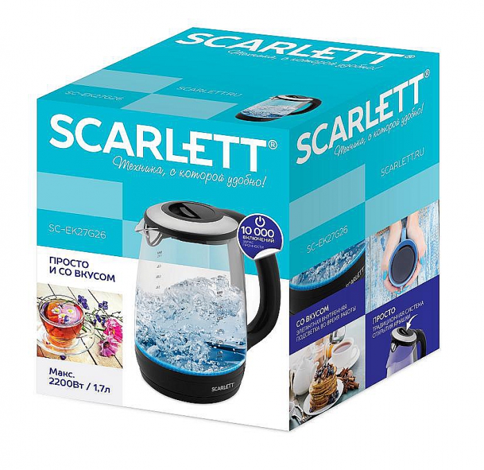 К настоящему времени было «переодето» более 300 наименований продукции Scarlett. Коллекцию чайников Scarlett пополнили изделия из закаленного высокопрочного стекла, устойчивого к сильному нагреву и резким перепадам температуры, из стали повышенной прочности и чайники из экологически чистого пластика.