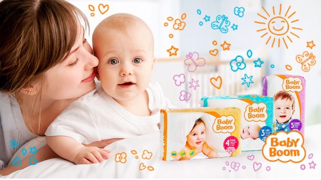Первыми товарами под маркой Baby boom стали подгузники в упаковке увеличенного размера (44-56 штук), сейчас линейка представлена шестью наименованиями, включая пеленки и подгузники-трусики, их доля в категории составляет около 50%.