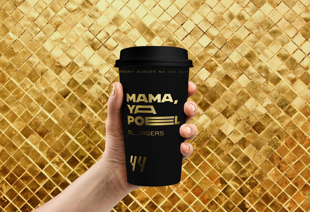 Визуальный стиль бренда соответствует молодежным трендам. Демонстрирует, что это не фастфуд заведение — это модное место, где можно найти настоящие бургеры ручной работы. А выбранные цвета — черный и золотой — лишь подчеркивают это.