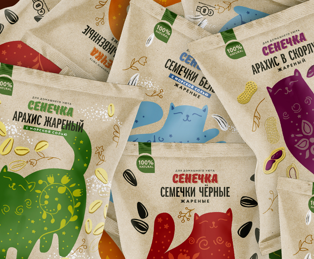 По заказу компании Delight Season студия Ohmybrand разработала торговую марку семечек и орехов "Сенечка".