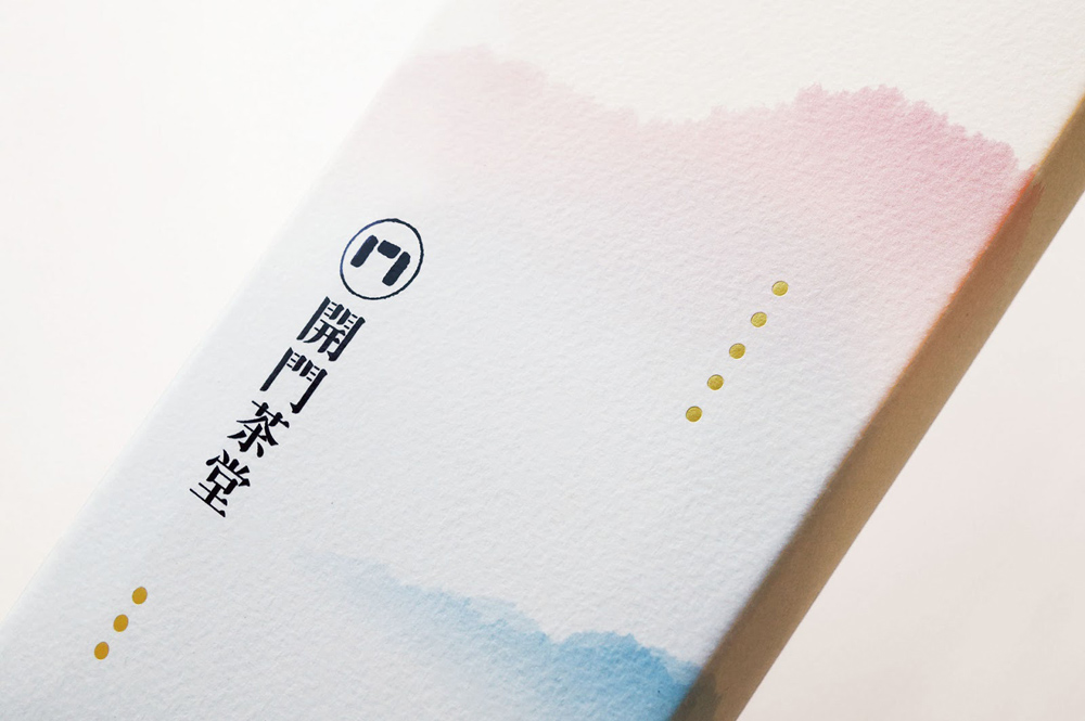 KaiMon в китайском означает «открытые двери». Название описывает теплое чувство, которое охватывает человека при возвращении в родной дом. Акварельные краски передают пробуждающуюся весну. Геометрические формы символизируют горы. Три элемента изображены на маленьких коробочках внутри: ветер, вода и солнце. Это то, что делает горы идеальным местом для произрастания чая.