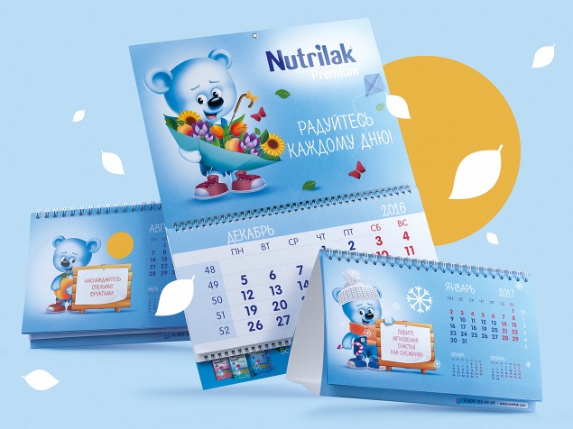 Дизайн календаря повторяет визуальную стилистику обновленной упаковки Nutrilak.