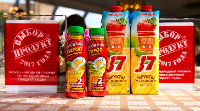 Сироп "Любимый" и сок J7® "Фрукты Целиком" получили премию "Инновационный продукт года 2017"