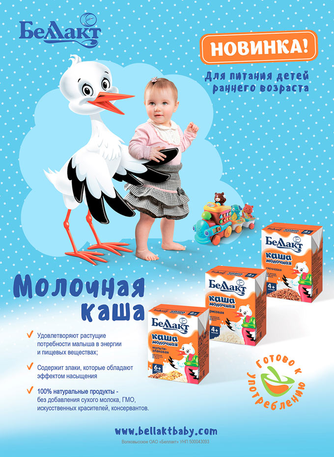 Беларусская компания «Беллакт» создала новый формат детских продуктов — жидкие каши для детей раннего возраста. Новая линейка представляет собой четыре вида молочных каш: гречневая, рисовая, мультизлаковая и овсяная.