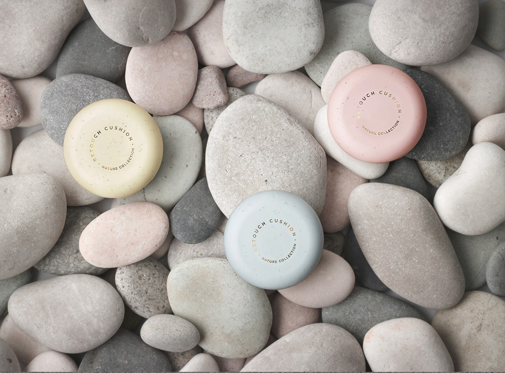 Корейская компания The Face Shop выпустила косметические кушоны Nature Collection Retouching Cushion. Тема природы передается в дизайне упаковки, который имитирует морские камешки.