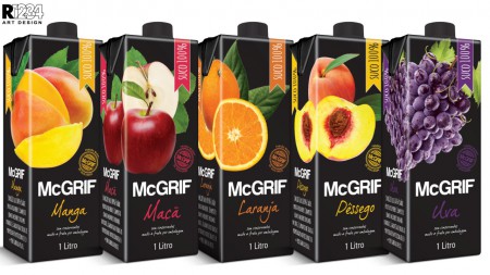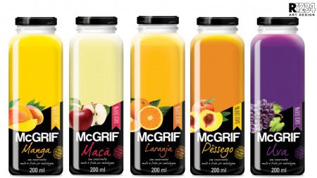 Креативное агентство R1234 Art Design из Сан-Паулу (Бразилия) разработало дизайн упаковки для фруктовых соков по заказу компании McGrif Sucos, известного бразильского производителя безалкогольных напитков. Соки упаковываются в тару двух видов – стеклянные бутылки и картонные упаковки Tetra Pak. Печать на упаковке осуществлялась флексографским способом.