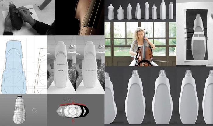 Очертания формы нового флакона, навеянные современными примерами промышленного и автомобильного дизайна, нашлись в образе изящной виолончели, отчетливо напоминающей изгиб женской талии.