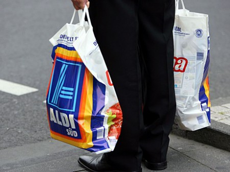 Белый пакет в синюю полоску с логотипом дискаунтера Aldi - такая же "классика" в Германии, как и пресловутый черный пакет с золотыми полосками в России. В скором времени они исчезнут. Другие немецкие супермаркеты и универмаги - Rewe, Real, Lidl и KiK - уже отказались от пластиковых пакетов. Теперь возле кассы лежат пакеты из плотной бумаги и холщовые сумки, которые можно использовать несколько раз.