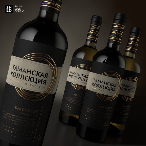 Агентство "Shumi Love Design" представляет дизайн упаковки для вин "Таманская коллекция". Дизайнерское решение выдержано в стиле модерн.