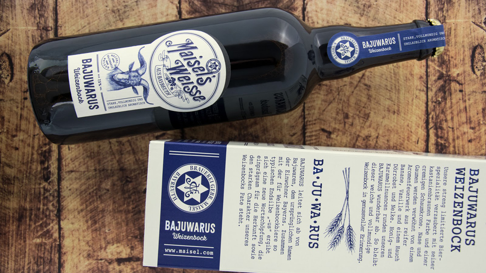 Принимая во внимание любовь баварцев к пиву стиля «бок», дизайнеры разработали название “Bajuwarus Weizenbock”, где фантазийное слово “Weizenbock” является слиянием “Bajuware” (баварец) и окончания “us”, которое характерно для классического пива «бок».