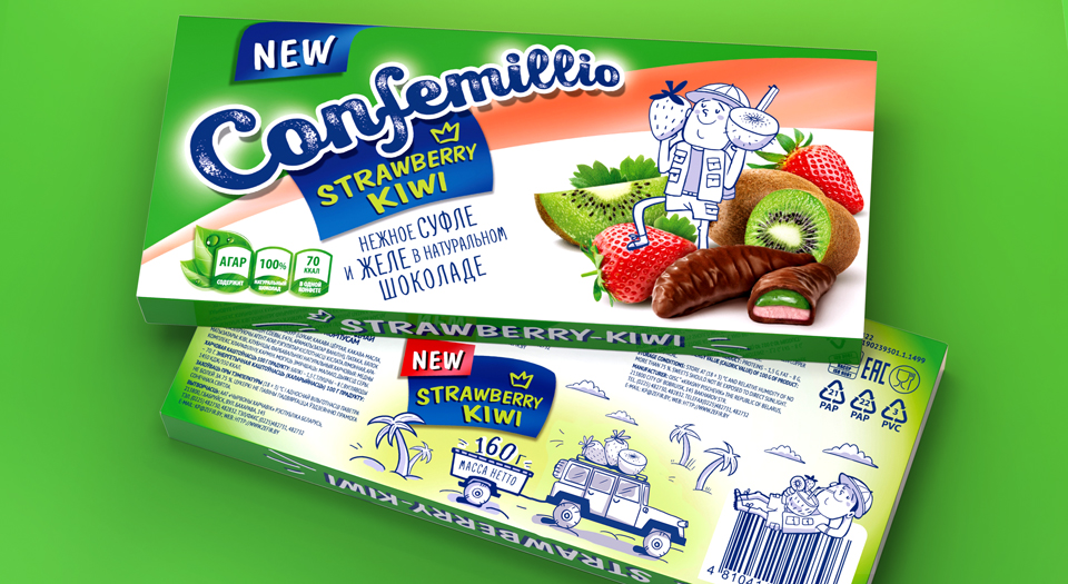 Суфле в шоколаде под брендом Confemillio – одна из развивающихся линеек, производимых старейшим белорусским кондитерским предприятием «Красный пищевик». Несмотря на хорошие прогнозы роста ниши фруктового суфле, до последнего времени Confemillio демонстрировал весьма скромные темпы продаж. Чтобы изменить ситуацию, потребовался полный редизайн упаковки: в решении этой задачи владельцам бренда помогли специалисты из Depot WPF.