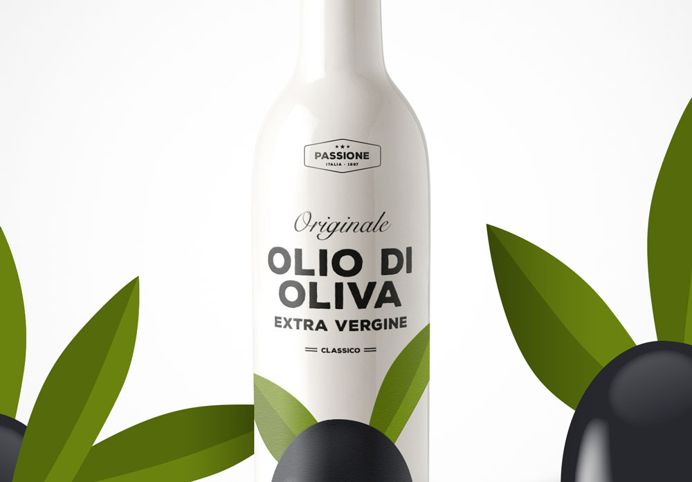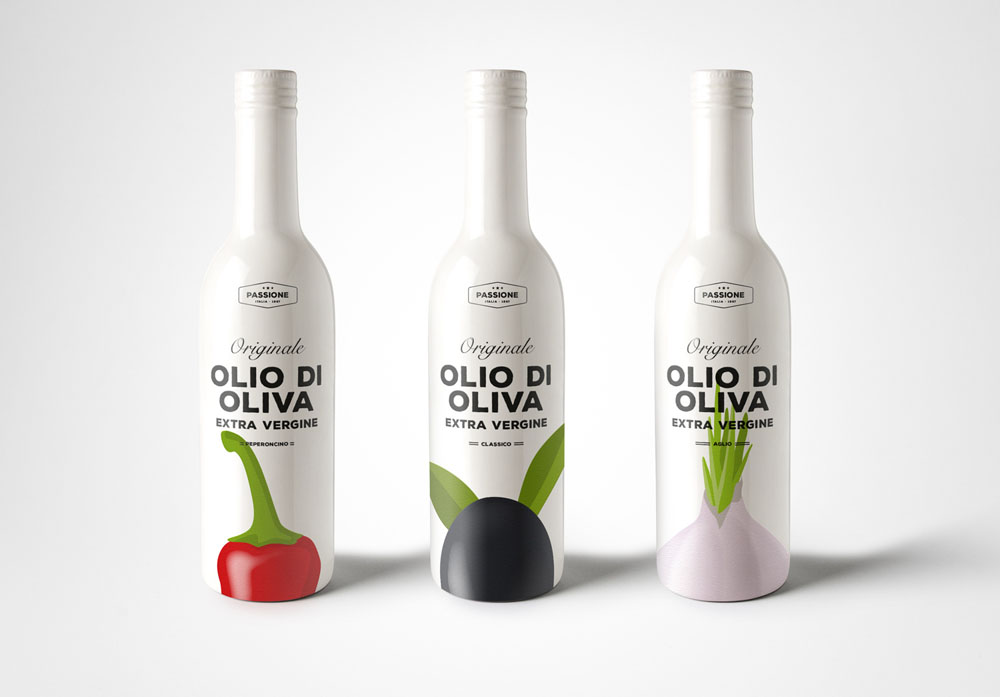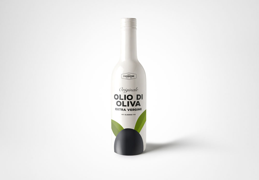 Оливковое масло Passione, оформленное в немецкой студии Philandi, сразу привлекает внимание.