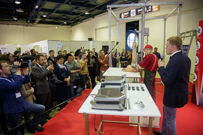 В этом году ФНЦ пищевых систем им. В.М. Горбатова РАН организовал на «Агропродмаш-2017» мастер-класс по обвалке свинины. Свой высокий профессионализм на этот раз демонстрировал мастер Обнинского колбасного завода Александр Петрухин.