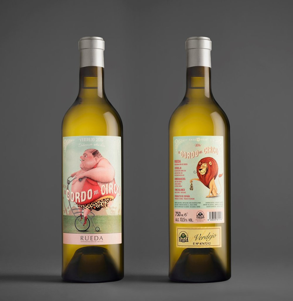 Испанская студия Estudio Maba представляет дизайн этикетки последней винной новинки от бренда El Gordo del Circo (пер.: толстяк из цирка).