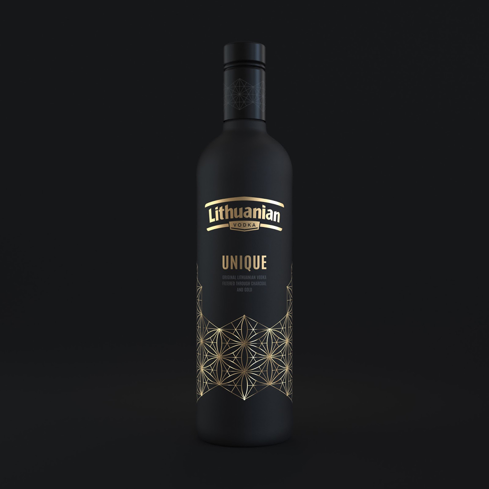 Литовский дизайнер Edvardas Kavarskas представляет работу по оформлению водки Lithuanian Vodka Unique. Эта новинка нацелена на местный рынок водки суперпремиального сегмента.