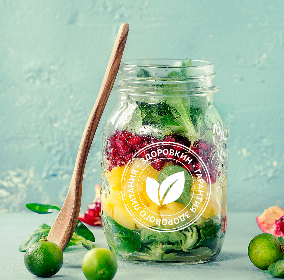 Чипсы, бургеры и газировки постепенно становятся словами ругательными – на сцену выходит тренд здорового питания. Молодая команда стартаперов из Санкт-Петербурга подхватила зелёный тренд и готовится к запуску собственных «островков» с продуктами здорового питания под брендом «Здоровкин». Бренд разрабатывали в студии Art Groove (Санкт-Петербург).