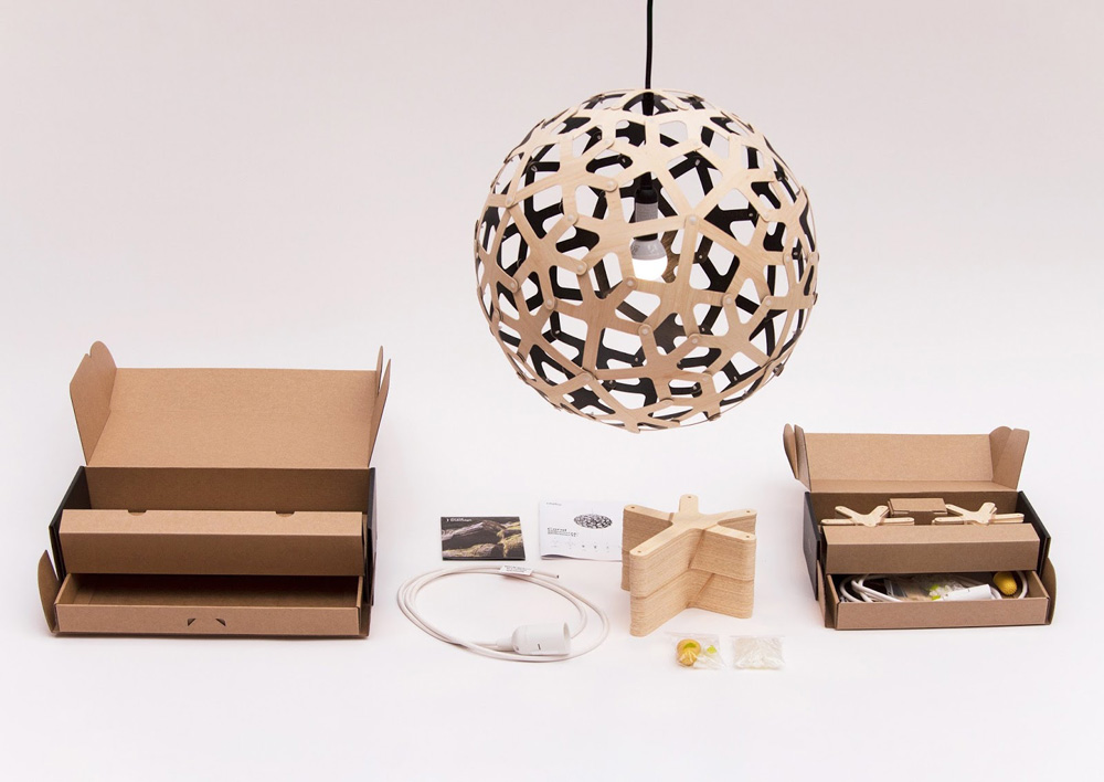 Новозеландский дизайнер David Trubridge обратился в студию Think Packaging с четкой задачей улучшить структурный дизайн упаковки для светильника.